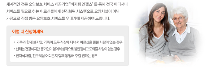 - 노인장기요양보험대상자도 이용이 가능합니다.