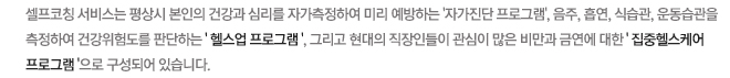 - 본 셀프코칭 서비스는 이용자 본인이 입력한 건강문항에 대한 답변을 기초로